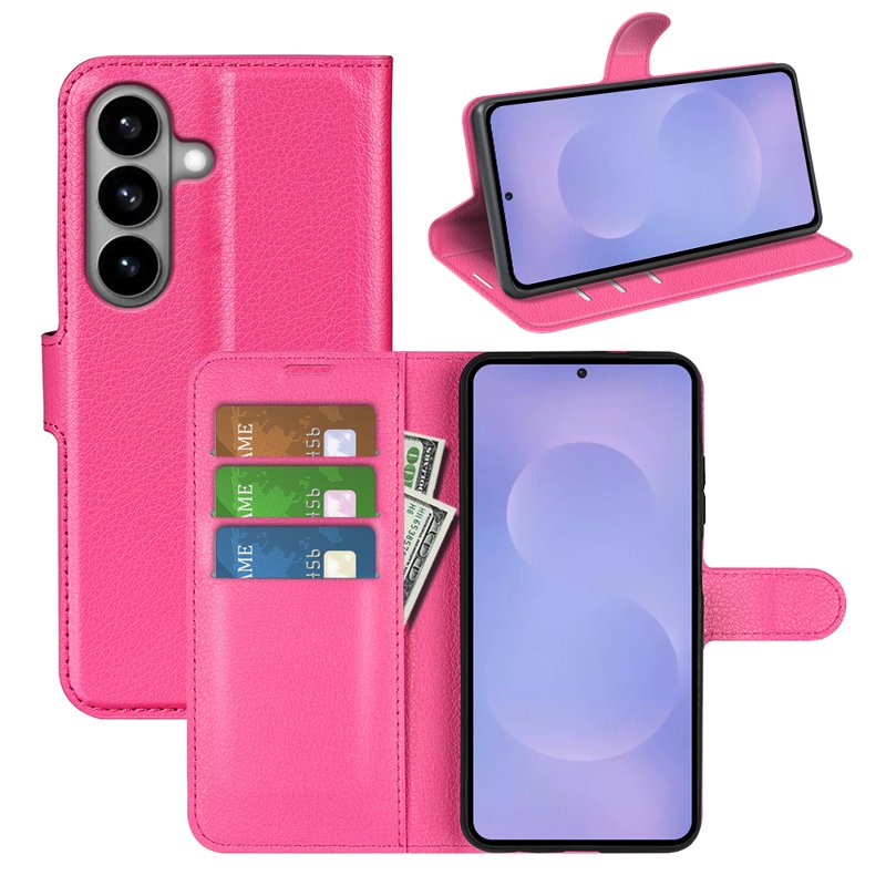 Skydda din Samsung Galaxy S26 med Litchi Texture Shockproof Leather Wallet Phone Cover i rosaröd färg. Denna stiliga och funktionella mobilfodral kombinerar elegans med praktiska funktioner. Med högkvalitativt material och smart design får du både skydd och bekvämlighet i ett och samma fodral.