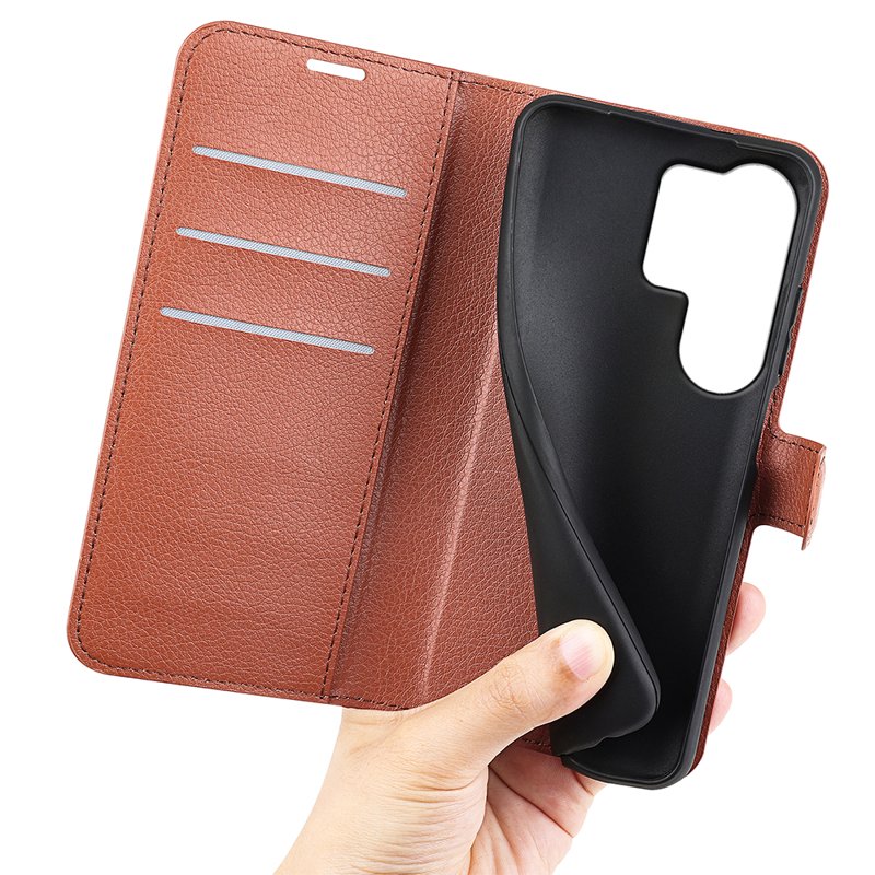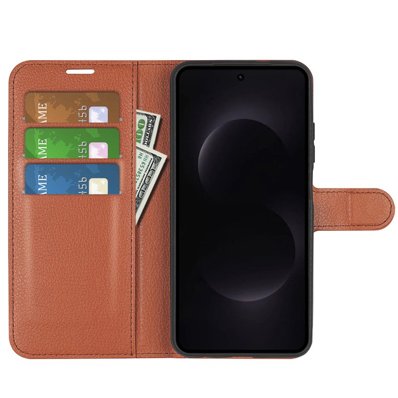Skydda din Samsung Galaxy S26 Ultra med detta stiliga och funktionella Litchi Texture Shockproof Leather Wallet Phone Cover i brunt. Denna plånboksfodral kombinerar elegans med praktiska funktioner. Njut av dubbel skydd och en smart design som gör det enkelt att ha allt du behöver på ett ställe.