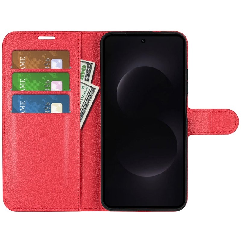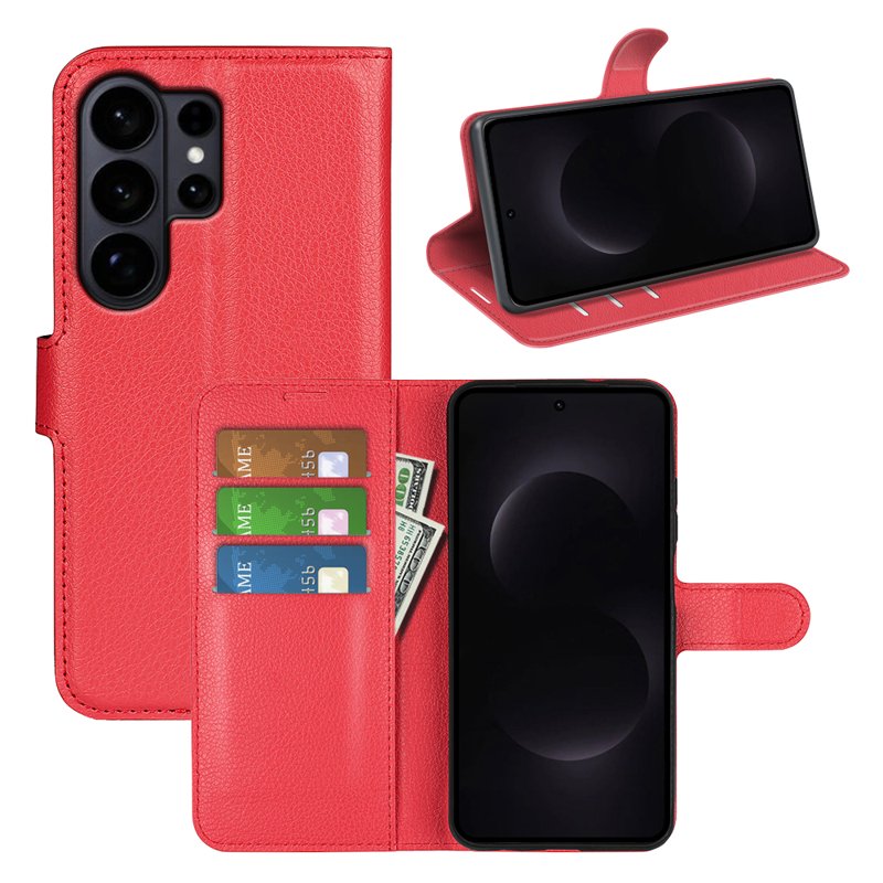 Skydda din Samsung Galaxy S26 Ultra med detta stiliga och funktionella Litchi Texture Shockproof Leather Wallet Phone Cover. Denna röda plånboksfodral kombinerar elegans med praktiska funktioner. Perfekt för den moderna användaren som vill ha både skydd och bekvämlighet.