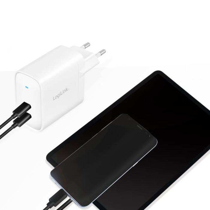 LogiLink Kompakt dubbel USB-C PD-laddare på 40W med GaN-teknologi