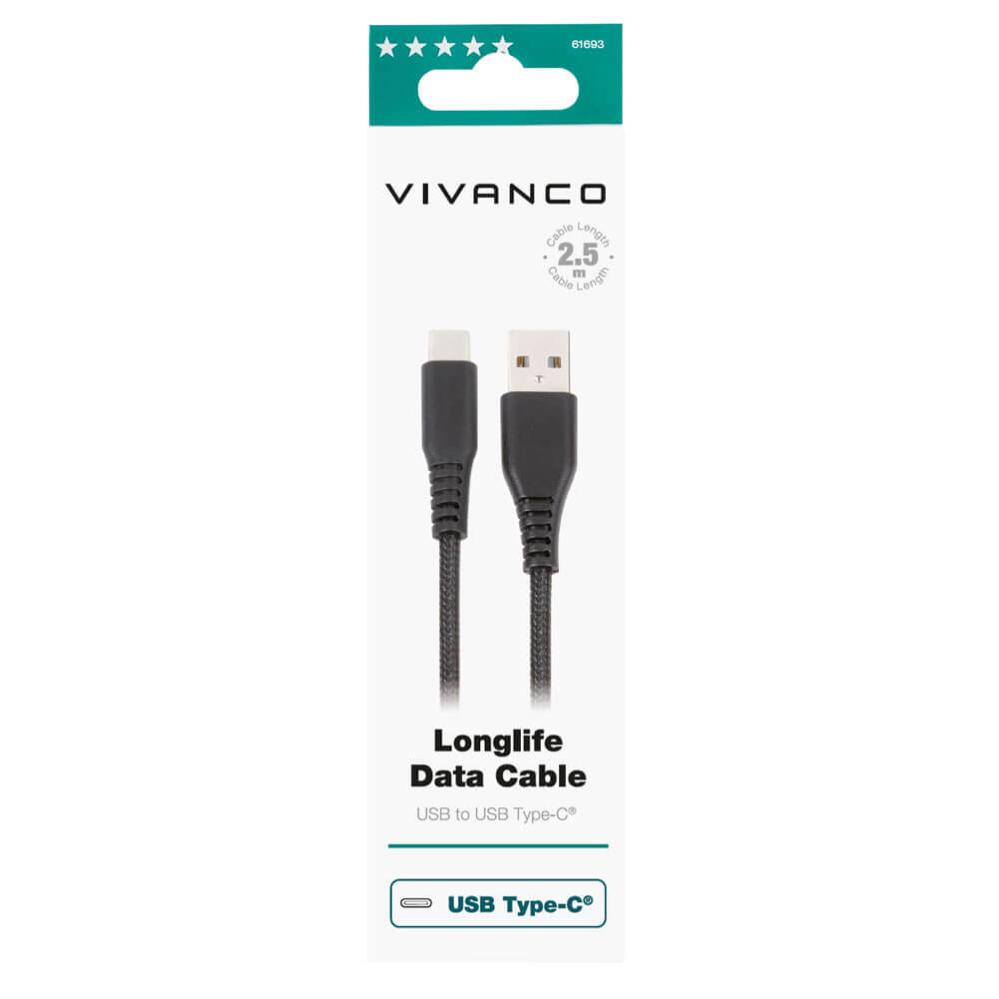 Handla denna produkt Vivanco Longlife USB-C/USB-A 2.0 kabel 2.5m Svart
