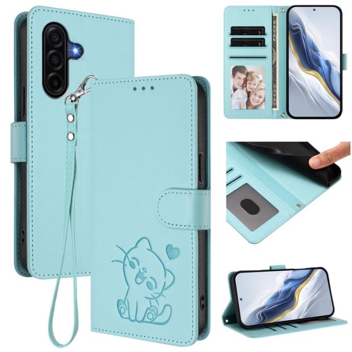 Love Cat Samsung Galaxy A37 Plånboksfodral Konstläder - Mintgrön