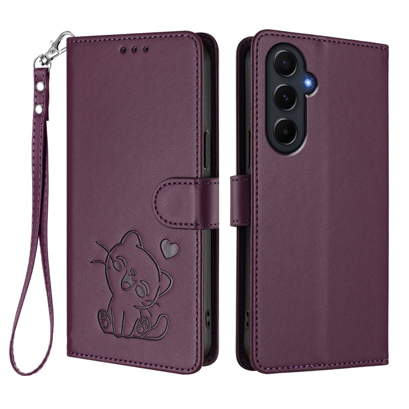 Handla denna produkt Love Cat Samsung Galaxy A55 5G Plånboksfodral Konstläder - Lila
