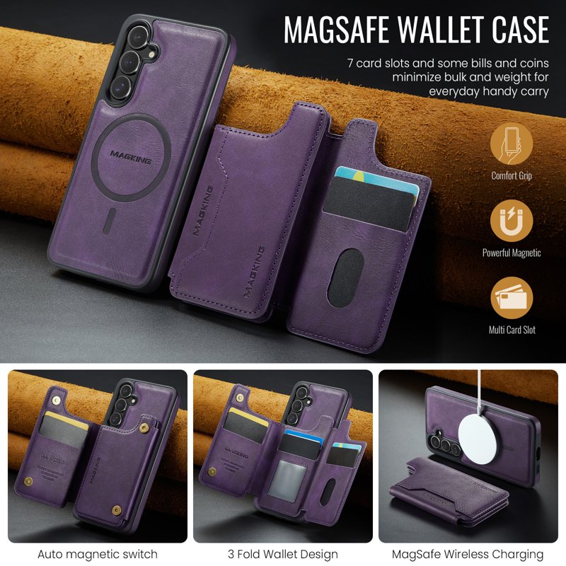 MAGKING K3 Series för Samsung Galaxy S26 Plus är den perfekta lösningen för dig som vill kombinera stil och funktionalitet. Med ett avtagbart plånboksfodral och en hållbar konstruktion erbjuder detta magnetiska fodral skydd och bekvämlighet i ett. Njut av enkel åtkomst till dina kort och en praktisk ställning för att se filmer eller läsa.