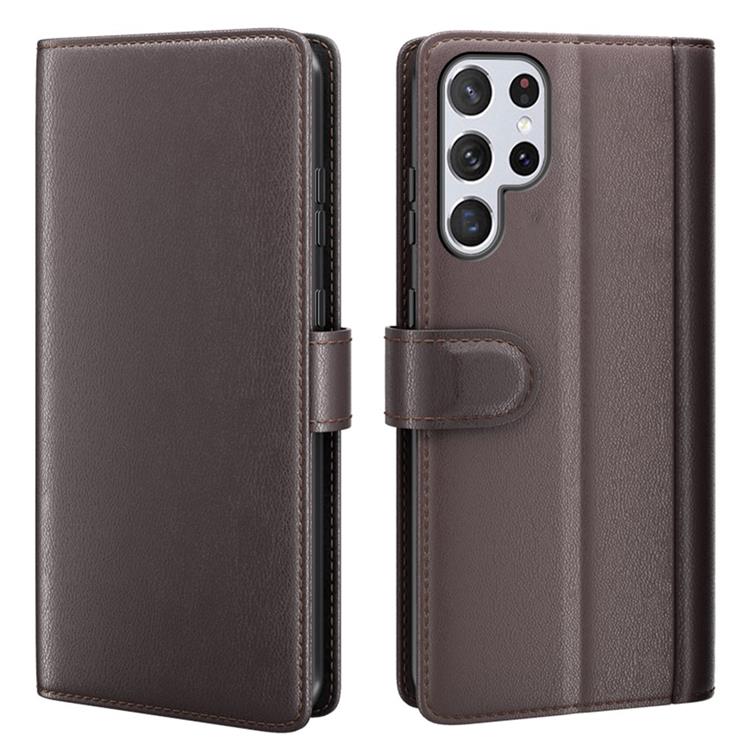 Magnetisk Äkta Läder Fodral Galaxy S22 Ultra - Brun