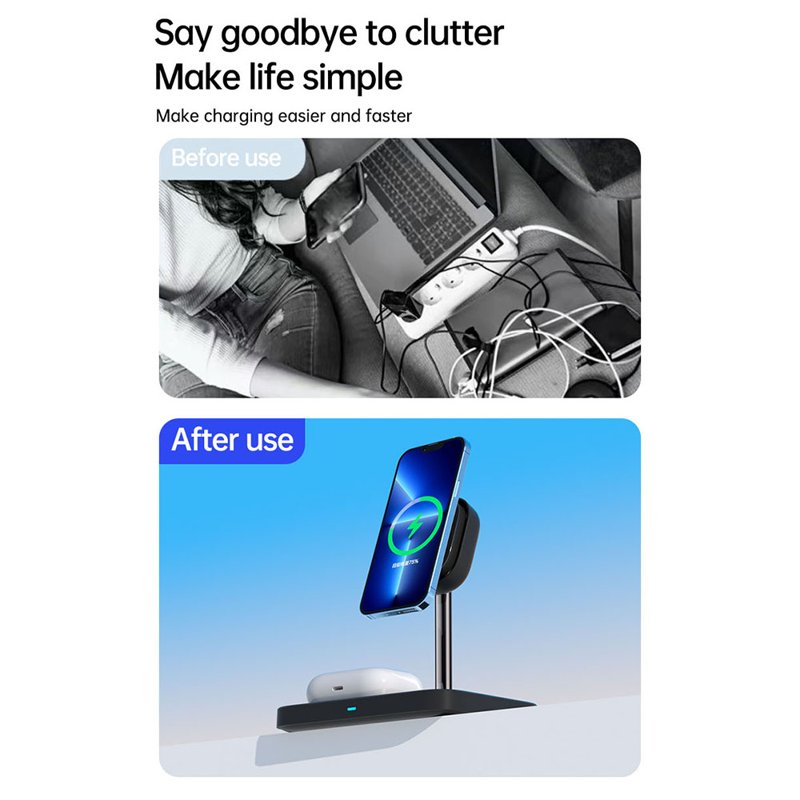 - 3-i-1 Design: Ladda tre enheter samtidigt utan kabeltrassel.