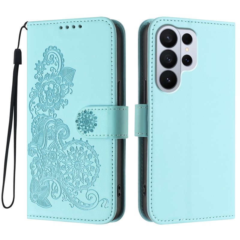 Skydda din Samsung Galaxy S26 Ultra med det eleganta Mandala Flower Leather Wallet Mobile Cover. Detta ljusblå fodral kombinerar stil och funktionalitet. Med en praktisk design får du plats för både telefon och kort. Perfekt för den moderna användaren som vill ha allt samlat på ett ställe.