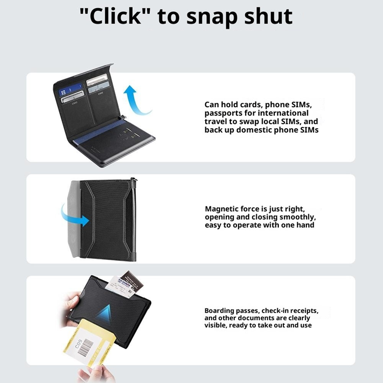 Genomtänkt organisering: Flera fack för kort, SIM-kort, mobil och pass – gör det enkelt att hitta rätt sak snabbt.