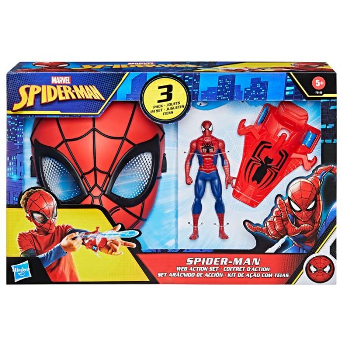 Spider-Man Web Action Set ger den ultimata lekupplevelsen för unga fans. Setet innehåller en Web Slinger med en mjuk projektil, en Spider-Man-mask och en 6" actionfigur. Barn från 5 år kan sätta på sig Web Slinger, fästa projektilen och skjuta iväg den för att härma Spider-Mans webbslinga. Masken har ett stretchigt ryggband som ger en bekväm passform för de flesta barn.