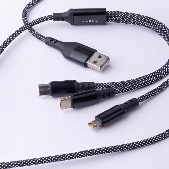 Maxlife 3in1 USB-C/USB-A till 2xUSB-C/Lightning 66W 1m Kabel - Svart