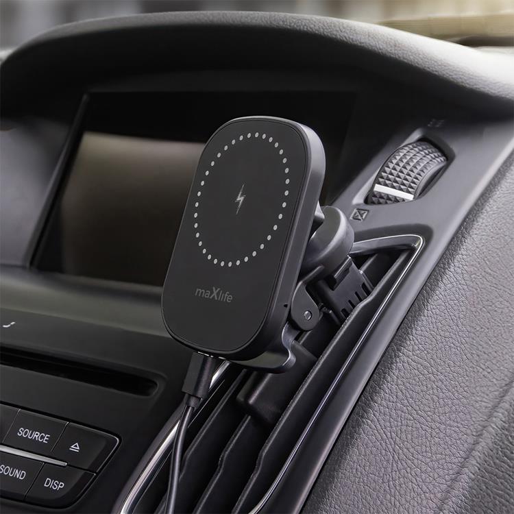 Maxlife Bilhållare Luftventil Med Trådlös Laddning 15W - Svart