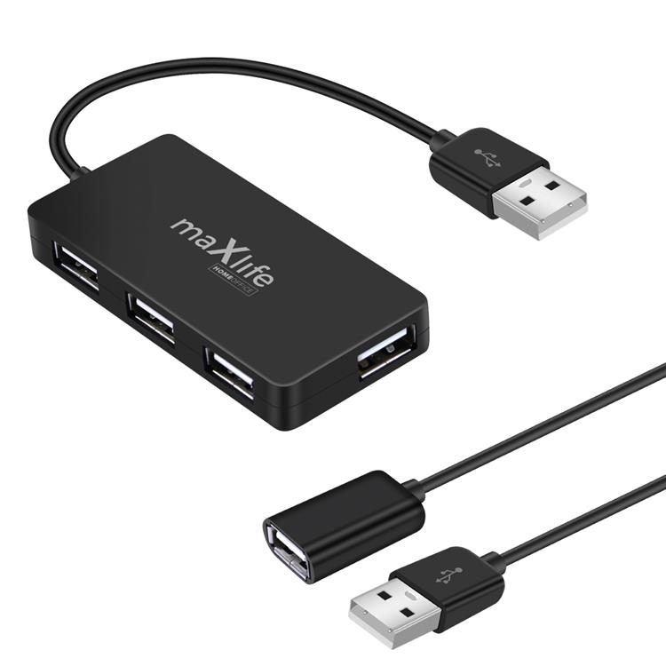 Maxlife Hemmakontor USB 2.0 USB hubb 4x USB 0,15 m med kabel 1,5 m - Svart