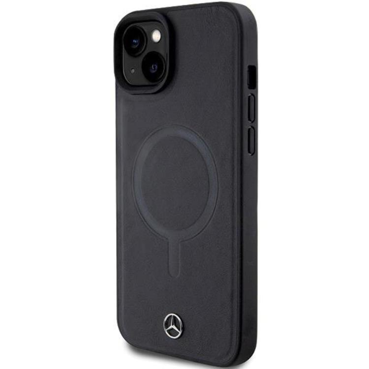 Mercedes iPhone 15 Plus Mobilskal Magsafe Smooth Läder - Svart