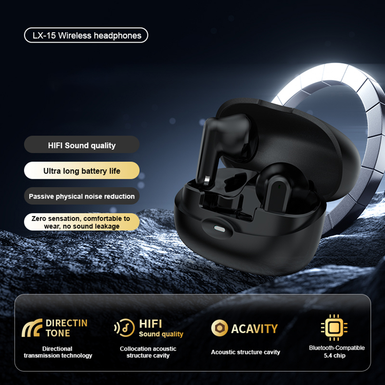 Mini TWS Trådlösa Bluetooth-Hörlurar Sports In-Ear HiFi Sound LX-15 - Svart