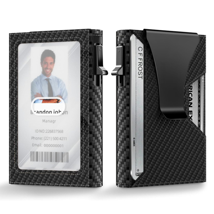 Minimalistisk ID Window Korthållare i Äkta Läder - Carbon Fiber