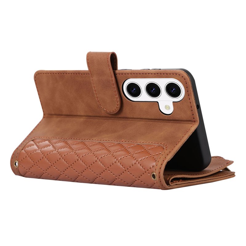 Skydda din Samsung Galaxy S26 med ett elegant och funktionellt fodral. Vårt fodral med 9 kortfack och en stilren rombdesign erbjuder både säkerhet och stil. Med en praktisk handledsrem är det enkelt att bära med sig. Perfekt för den som vill ha ordning på sina kort och kontanter samtidigt som man skyddar sin telefon.