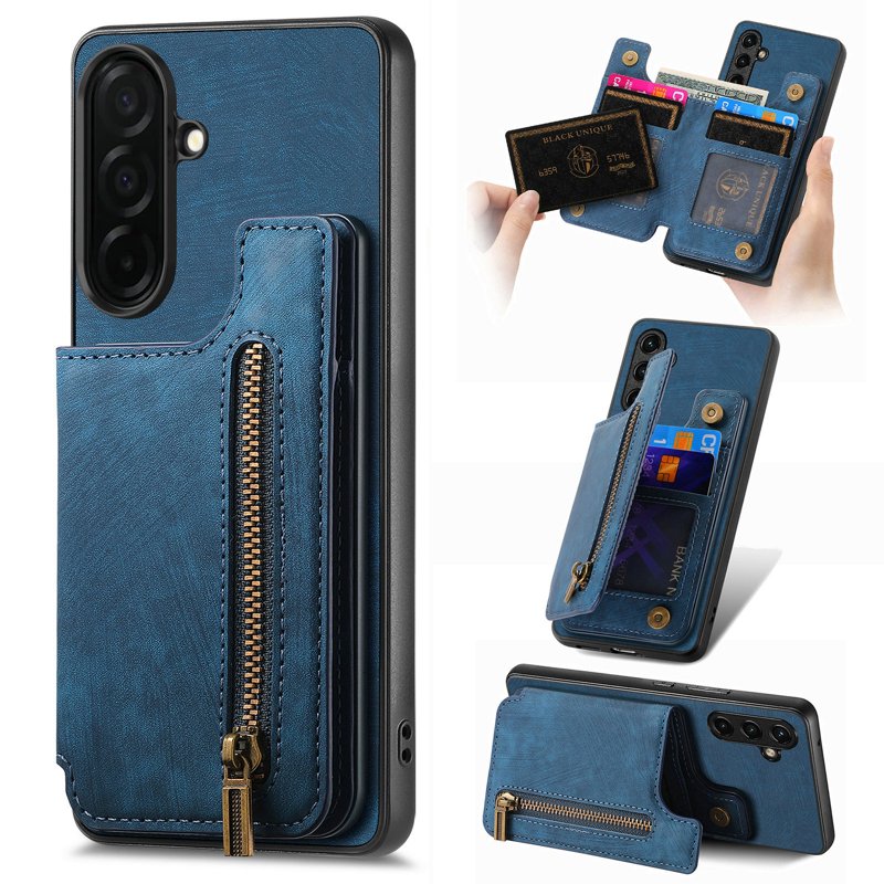 Skydda din Samsung Galaxy S26 med detta stiliga och funktionella fodral. Fodralet är tillverkat av hållbart PU-läder och TPU-material. Det erbjuder både säkerhet och bekvämlighet. Med integrerade kortfack och en säker dragkedjeficka är det perfekt för dig som är på språng.
