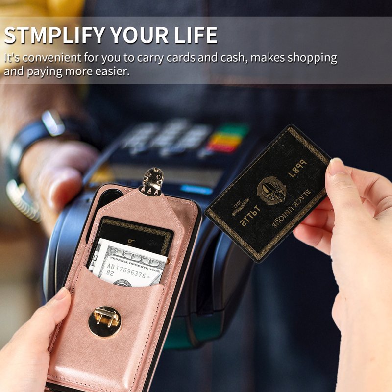 - Bakfickan med metallspänne skyddar dina kort och kontanter på ett säkert sätt.