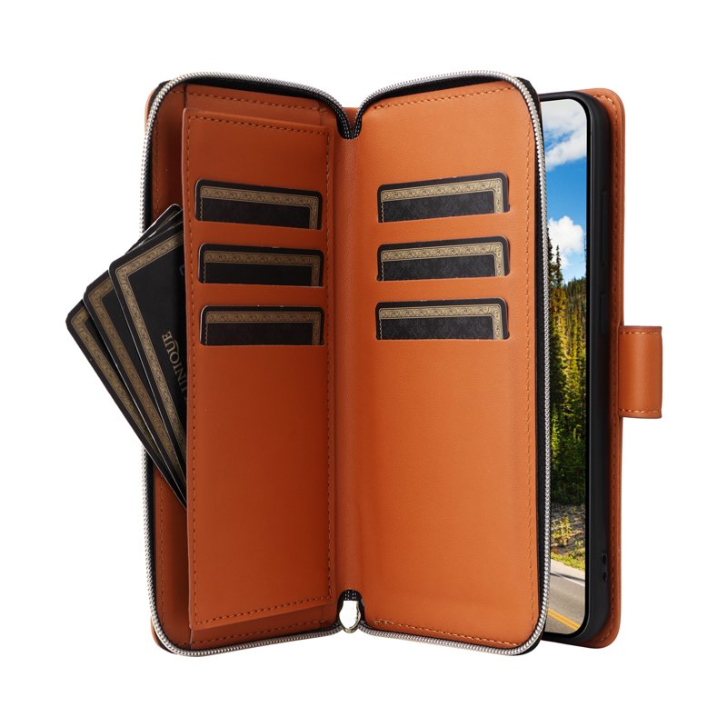 • Håll ordning på dina kort och kontanter med 9 kortfack och en rymlig ficka för sedlar. Zippern skyddar dina värdesaker.