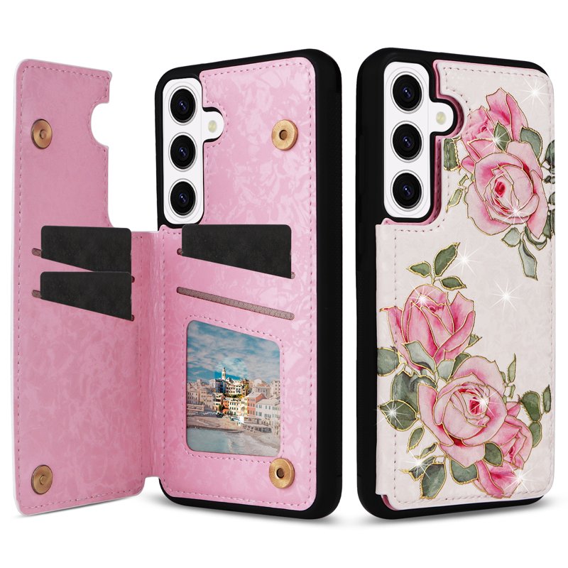 Mobilfodral för Samsung Galaxy S26 Plus Konstläder RFID - Rosablomma