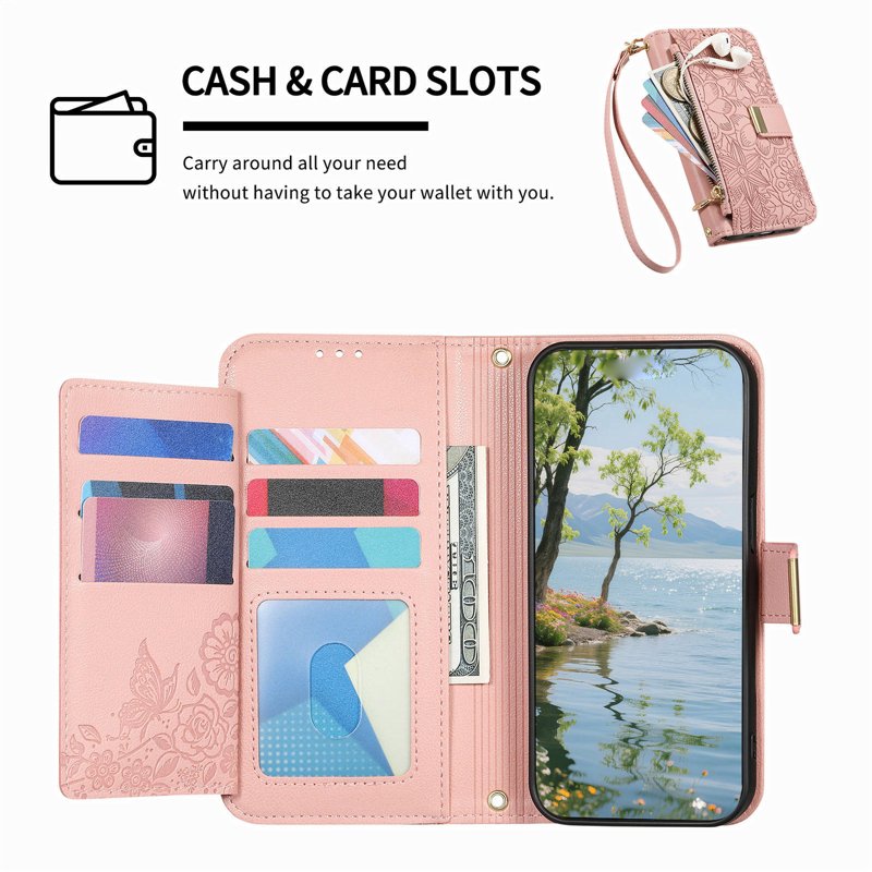 Skydda din Samsung Galaxy S26 Plus med detta eleganta fodral i rosa med blommönster. Det kombinerar stil och funktionalitet. Med flera kortfack och en praktisk dragkedja är detta fodral perfekt för den moderna användaren. Håll dina värdesaker organiserade och lättillgängliga.