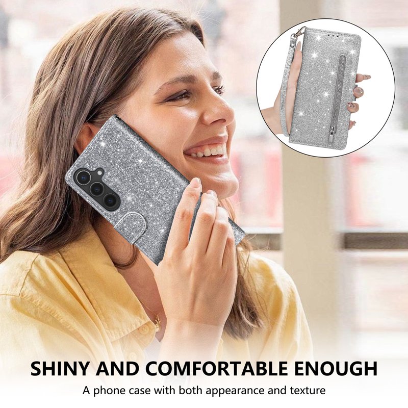 Skydda din Samsung Galaxy S26 Plus med denna eleganta och funktionella Stand Case Glitter Phone Leather Cover. Den kombinerar stil och säkerhet med praktiska funktioner. Med en glittrande yta och smarta förvaringslösningar är detta fodral perfekt för den moderna användaren.