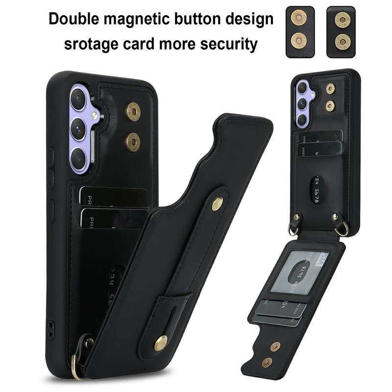 • Säker magnetisk stängning – Med en dubbel magnetknapp stänger fodralet säkert och förhindrar oavsiktlig förlust av kort.