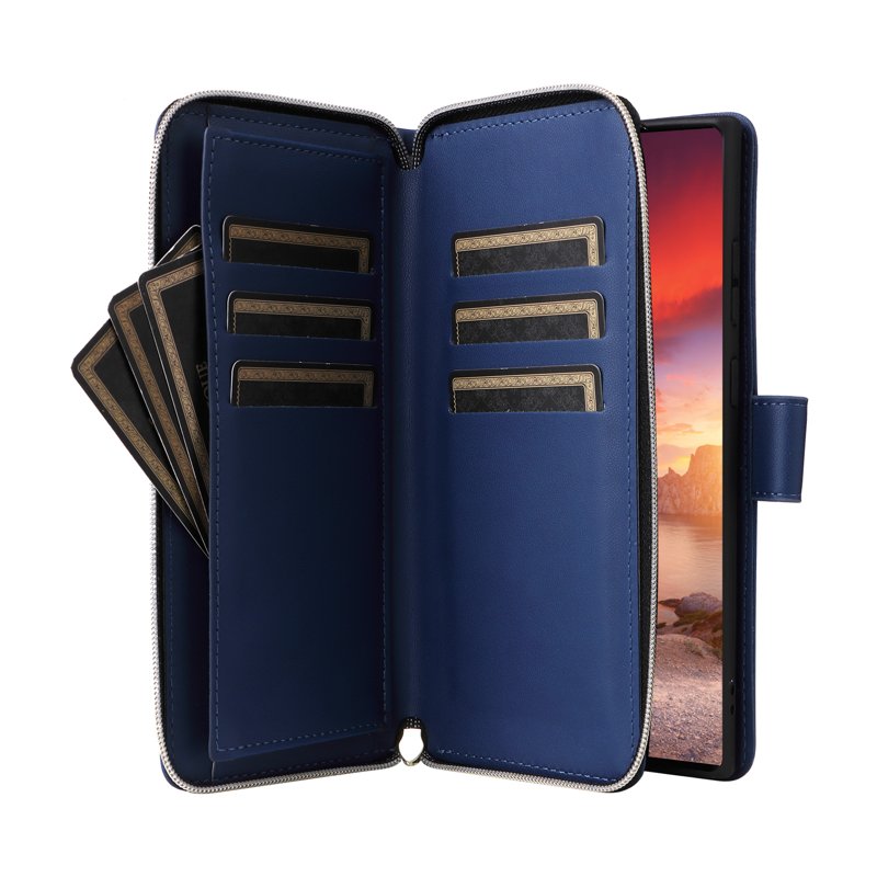 - Håll ordning på dina kort och kontanter med nio dedikerade kortfack och en rymlig ficka för sedlar. Zippern skyddar dina värdesaker.