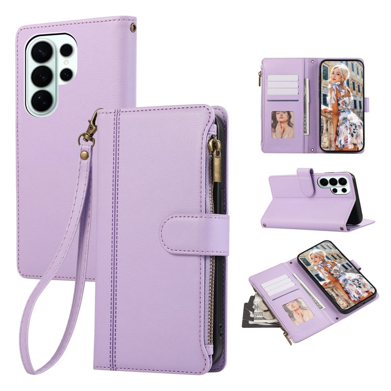 Skydda din Samsung Galaxy S26 Ultra med detta eleganta och funktionella fodral. Fodralet är designat för att kombinera stil och praktiska funktioner. Med flera kortfack och en säker dragkedja är det perfekt för den moderna användaren. Njut av handsfree-visning och en säker stängning som gör att du kan använda din telefon utan bekymmer.
