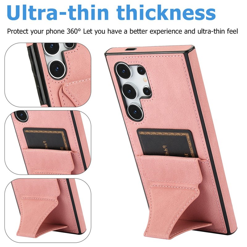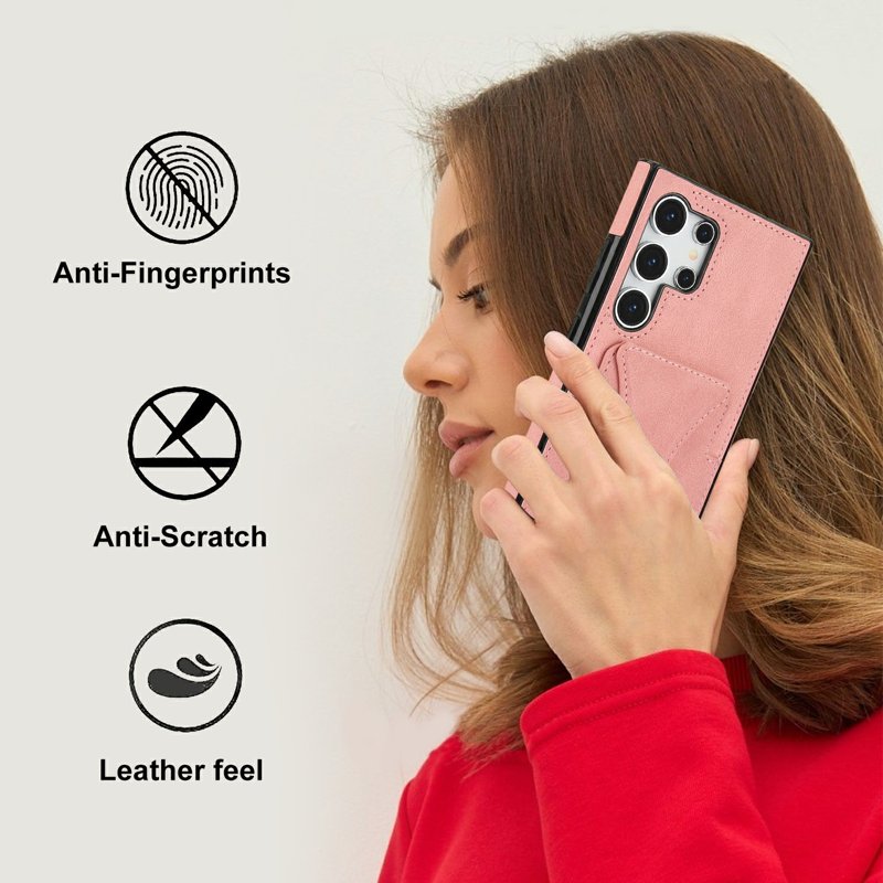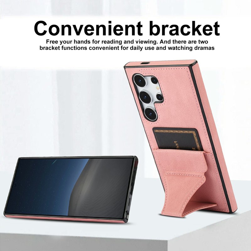 Skydda din Samsung Galaxy S26 Ultra med detta eleganta och funktionella läder- och TPU-fodral. Det erbjuder både stil och säkerhet. Med en praktisk kortficka och en kickstand-funktion är detta fodral perfekt för den moderna användaren. Njut av enkel åtkomst till dina kort och bekväm visning av media utan att behöva hålla i telefonen.