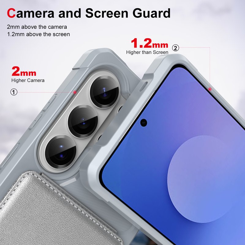 • Skyddande kanter som är 2 mm över kameran och 1,2 mm över skärmen för att förhindra repor och stötar.