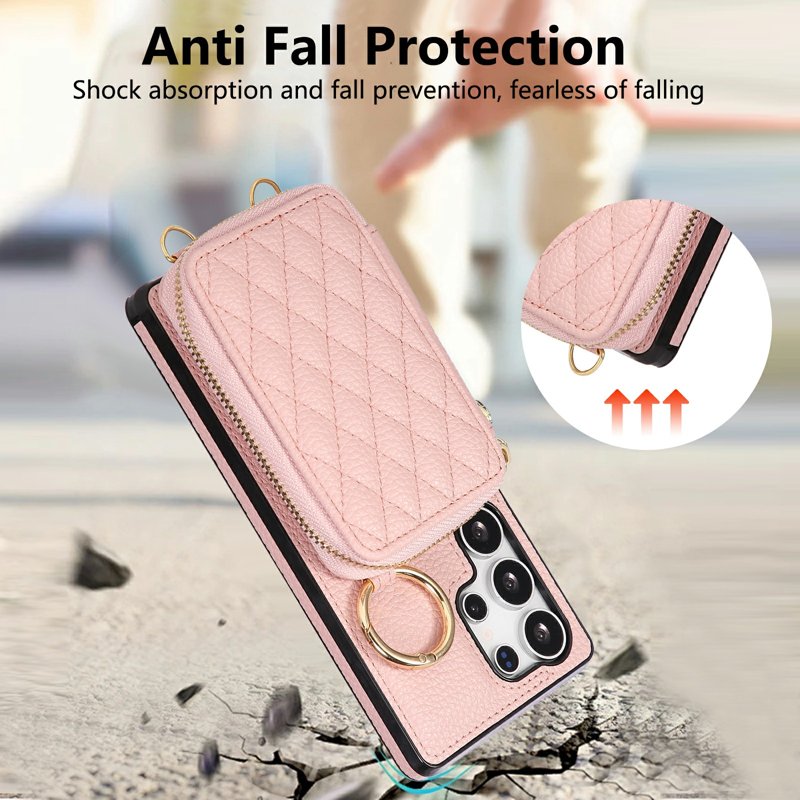 Skydda din Samsung Galaxy S26 Ultra med detta praktiska och stiliga fodral. Zipper Card Holder i PU-läder erbjuder både funktion och elegans. Med en justerbar axelrem är det enkelt att bära med sig telefonen. Fodralet kombinerar en plånbok och ett skyddande skal, vilket gör det till det perfekta valet för den moderna användaren.