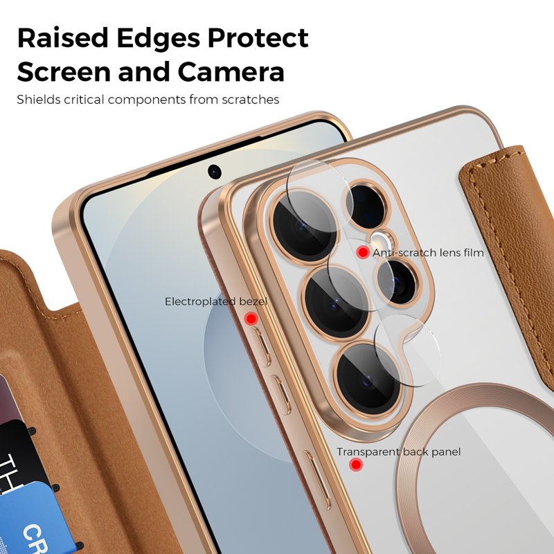 Skydda din Samsung Galaxy S26 Ultra med detta eleganta och funktionella magnetiska fodral. Med RFID-blockering och praktiska kortfack erbjuder detta fodral både säkerhet och stil. Den transparenta baksidan framhäver telefonens design samtidigt som den ger ett robust skydd. Perfekt för den moderna användaren som värdesätter både funktion och estetik.