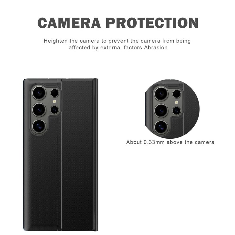 Skydda din Samsung Galaxy S26 Ultra med detta eleganta och funktionella fodral. Det är tillverkat av högkvalitativt PU-läder och PC, vilket ger både hållbarhet och en lyxig känsla. Med smarta funktioner som en visningsfönsterdesign och automatisk sugfunktion, erbjuder detta fodral både stil och skydd.