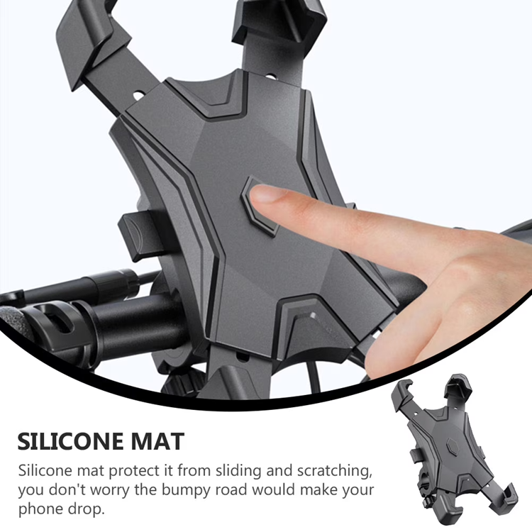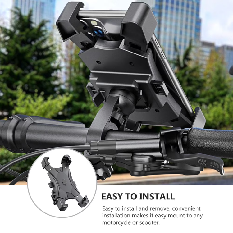 Mobilhållare för motorcykel är det smarta valet för dig som vill ha mobilen nära till hands under varje resa. Oavsett om du pendlar i stan, kör längre turer eller använder scooter till vardags får du en stabil och praktisk lösning som gör körningen smidigare. Den är enkel att montera och lika lätt att ta bort vid behov, vilket gör den perfekt för flexibel användning. Med slitstarka material, säker passform och skyddande silikonmatta håller denna mobilhållare din mobil på plats även på ojämna vägar. Du får dessutom fri åtkomst till mobilens funktioner, så att du enkelt kan använda navigation och andra viktiga appar under färden.
