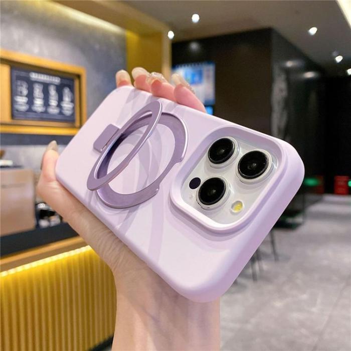 Mobilskal för iPhone 15 Pro Max MagSafe Liquid Silikon Kickstand Anti Fingerprints - Lila