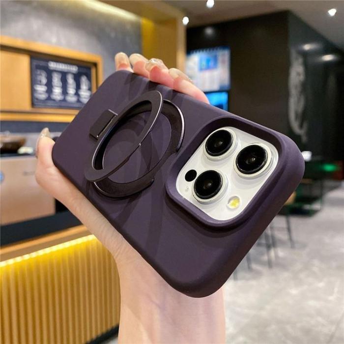 Mobilskal för iPhone 15 Pro Max MagSafe Liquid Silikon Kickstand Anti Fingerprints - Mörklila