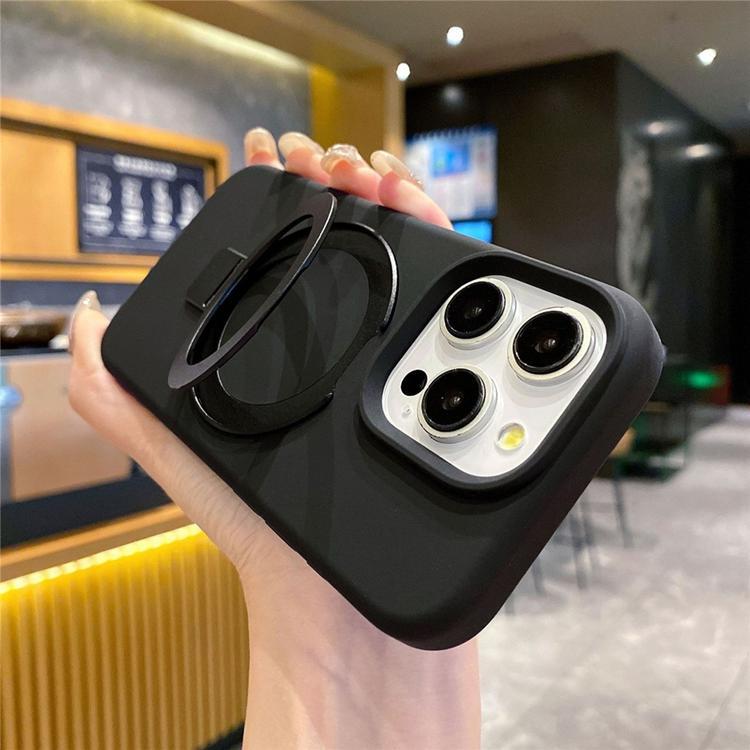 Mobilskal för iPhone 15 Pro Max MagSafe Liquid Silikon Kickstand Anti Fingerprints - Svart
