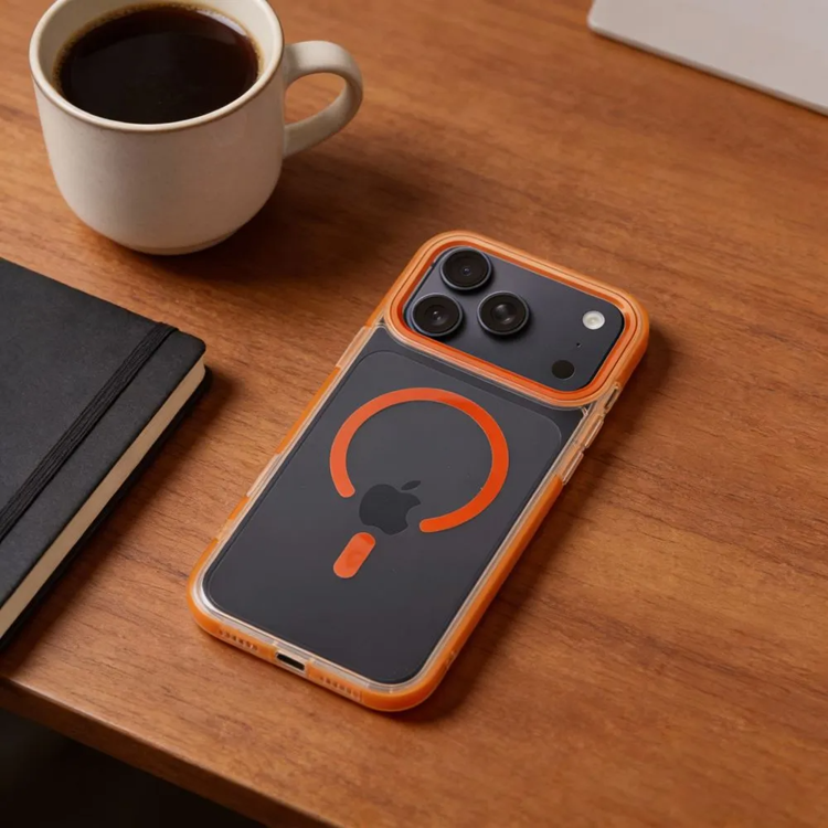 Mobilskal För iPhone 17 Pro MagSafe Frame Clear Hybrid - Orange
