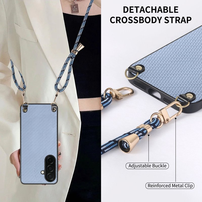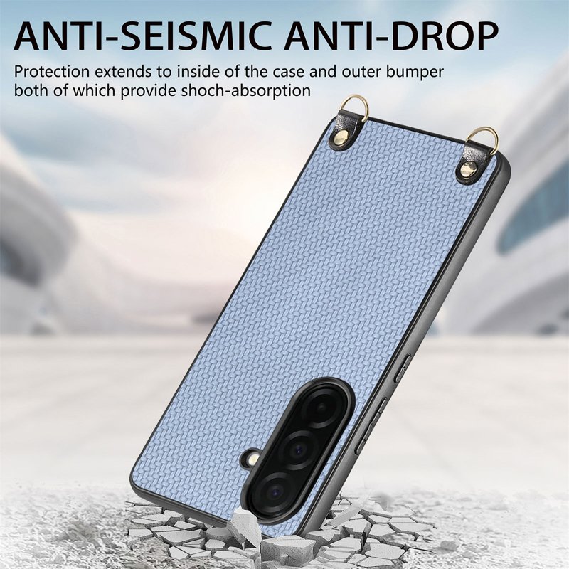 Skydda din Samsung Galaxy S26 med detta stiliga och funktionella fodral. Det är designat för att ge överlägsen skydd och bekvämlighet. Med en elegant kolfiberstruktur och en justerbar rem är detta fodral perfekt för både vardag och äventyr.