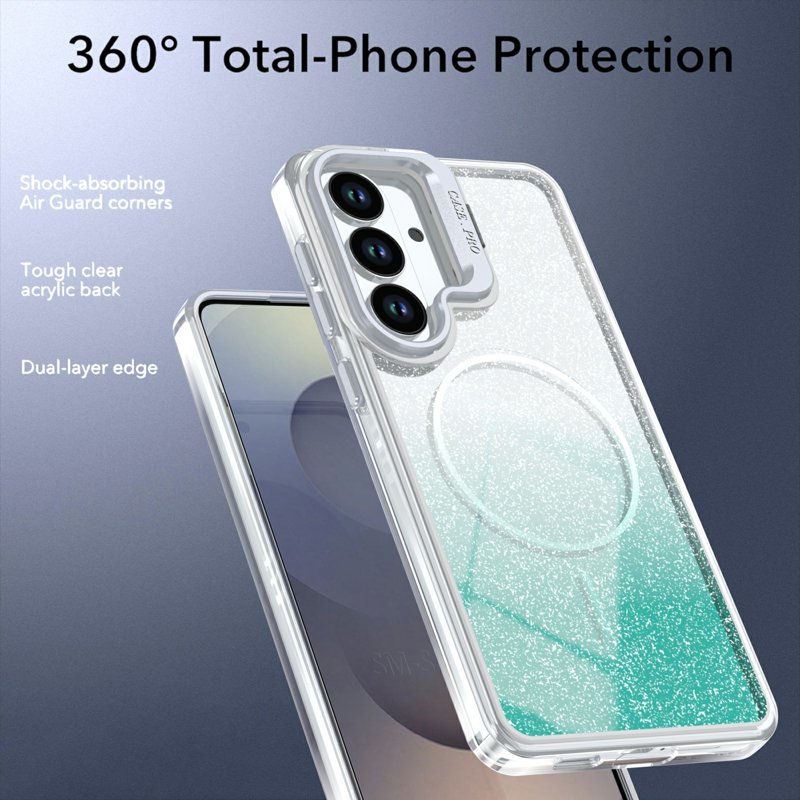 Mobilskal för Samsung Galaxy S26 Magnetiskt Gradient Glitter TPU PC - Sjögrön