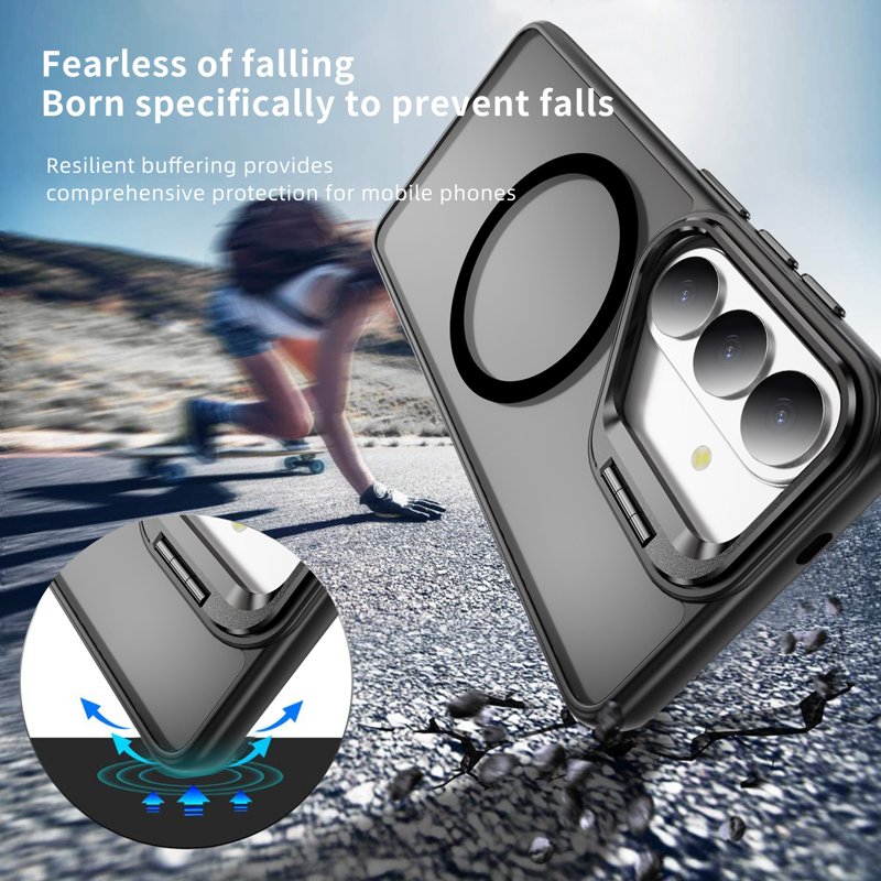 Skydda din Samsung Galaxy S26 med det här magnetiska fodralet som erbjuder både stil och funktionalitet. Med en unik design och högkvalitativa material ger detta fodral överlägsen hållbarhet och skydd. Njut av en handsfree-upplevelse med kickstand-funktionen och dra nytta av den starka magnetiska adsorptionen för enkel användning av tillbehör.