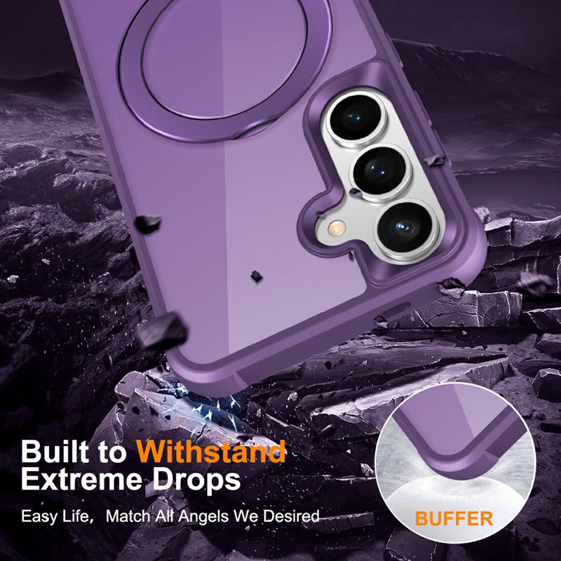Skydda din Samsung Galaxy S26 med vårt magnetiska fodral med ringhållare och kickstand. Detta fodral kombinerar stil och funktionalitet. Det ger överlägset skydd mot stötar och fall. Med en elegant lila design är det både praktiskt och snyggt.