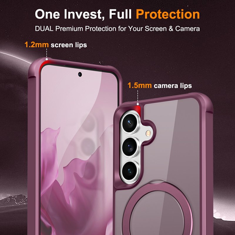 Skydda din Samsung Galaxy S26 med det här eleganta och funktionella magnetiska fodralet i vinröd. Det är designat för att ge överlägset skydd och bekvämlighet. Med en integrerad ringhållare och kickstand är detta fodral perfekt för både arbete och nöje. Njut av en säker och stilren lösning för din smartphone.