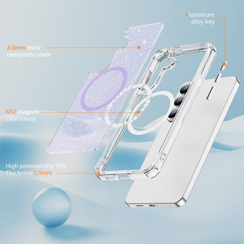 Skydda din Samsung Galaxy S26 Plus med vårt Glitter Magnetic Case. Denna kristallklara telefonfodral kombinerar stil och funktionalitet. Med ett elegant glittrande design och robust skydd är detta fodral perfekt för den moderna användaren. Njut av säkerhet och stil i ett och samma paket.