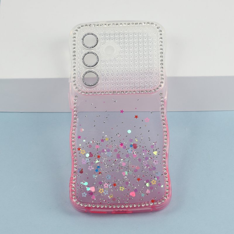 - Rhinestone wave-frame design tillför en lyxig touch och förbättrar telefonens visuella intryck.