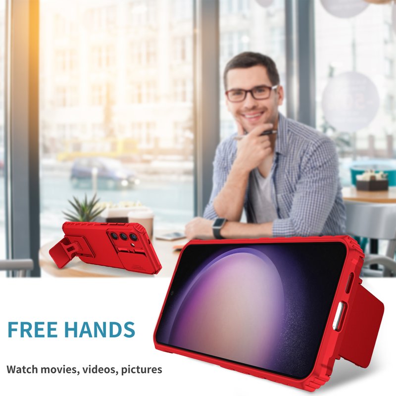Skydda din Samsung Galaxy S26 Plus med detta hållbara och funktionella fodral. Med en kombination av hård PC och mjuk TPU får du ett skydd som klarar av både stötar och repor. Det inbyggda stativet gör det enkelt att titta på filmer eller videos utan att hålla i telefonen. Detta fodral är designat för att ge dig trygghet och bekvämlighet i din vardag.