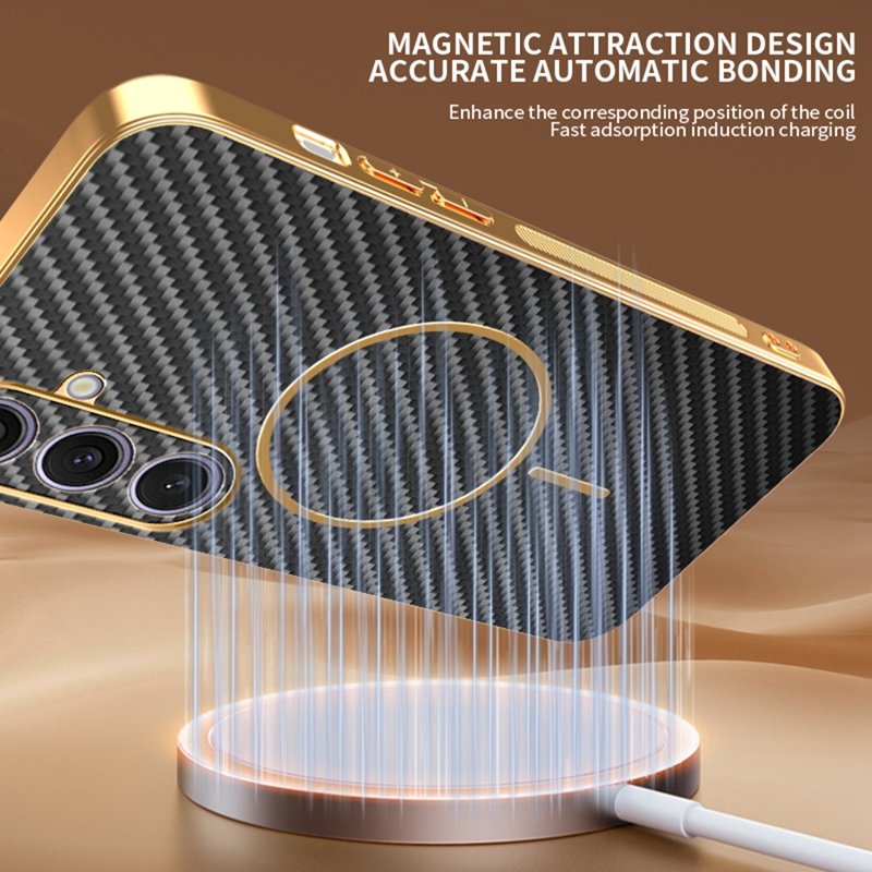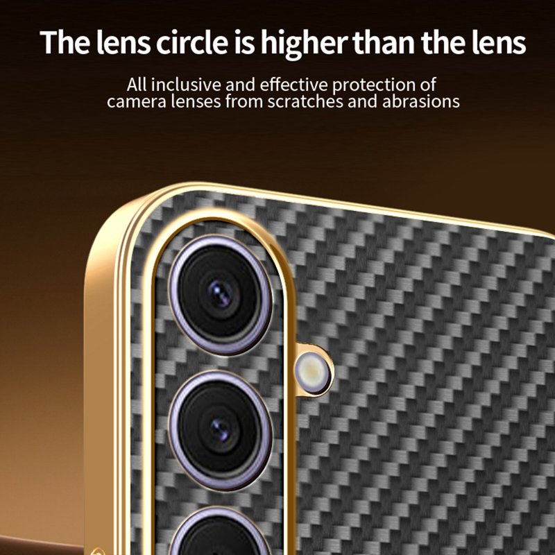 Skydda din Samsung Galaxy S26 Plus med ett stilrent och funktionellt fodral i kolfibertextur. Detta fodral kombinerar hållbarhet med en elegant design. Med sin flexibla TPU-konstruktion och premium elektroplätering erbjuder det både skydd och estetik. Håll din telefon säker och snygg med detta fodral som är utformat för att passa perfekt.