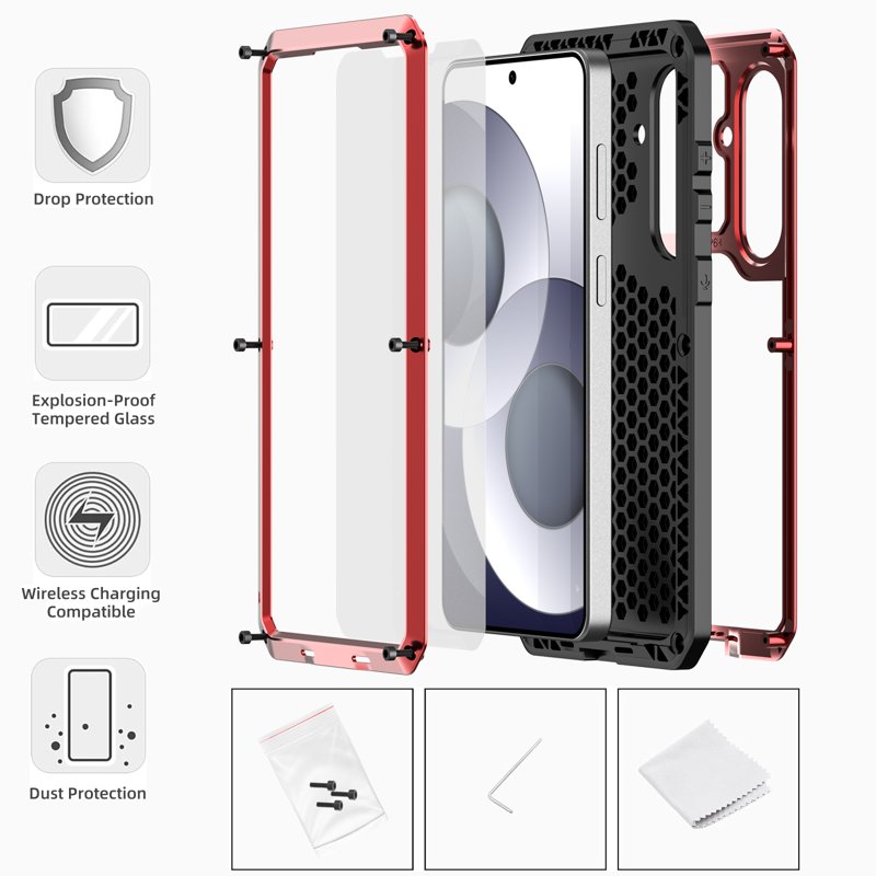 Skydda din Samsung Galaxy S26 med detta silikon- och metallfodral. Det erbjuder överlägsen säkerhet och hållbarhet. Med en inbyggd skärmskydd av härdat glas får du ett komplett skydd utan att kompromissa med känslighet eller klarhet. Perfekt för den aktiva livsstilen.