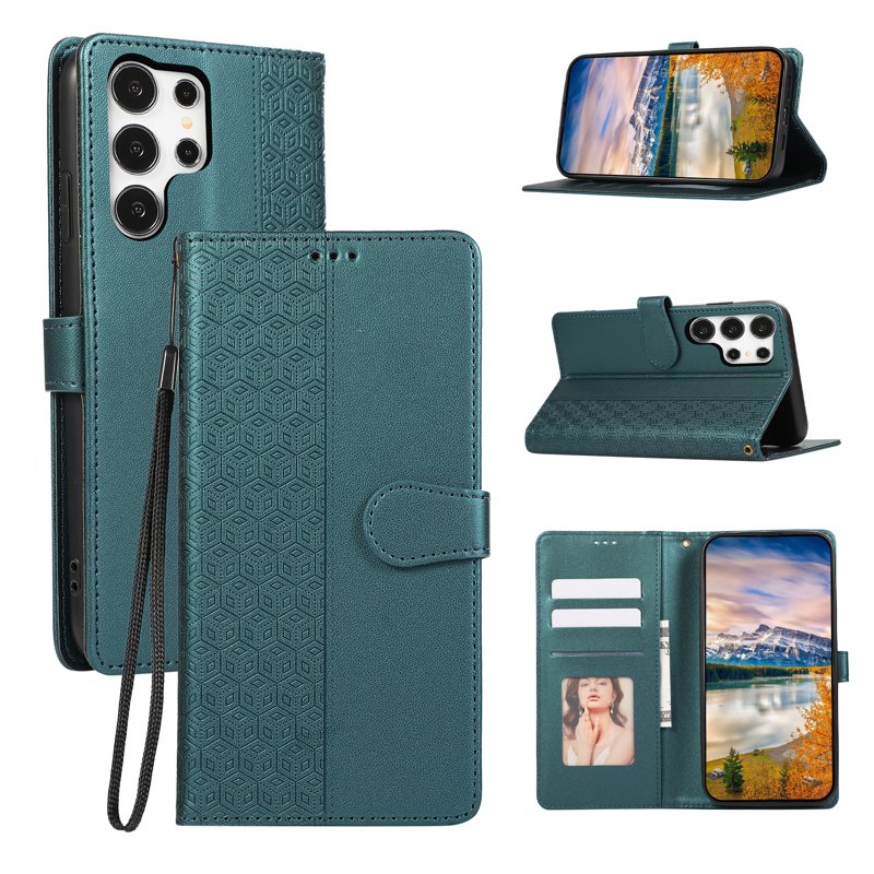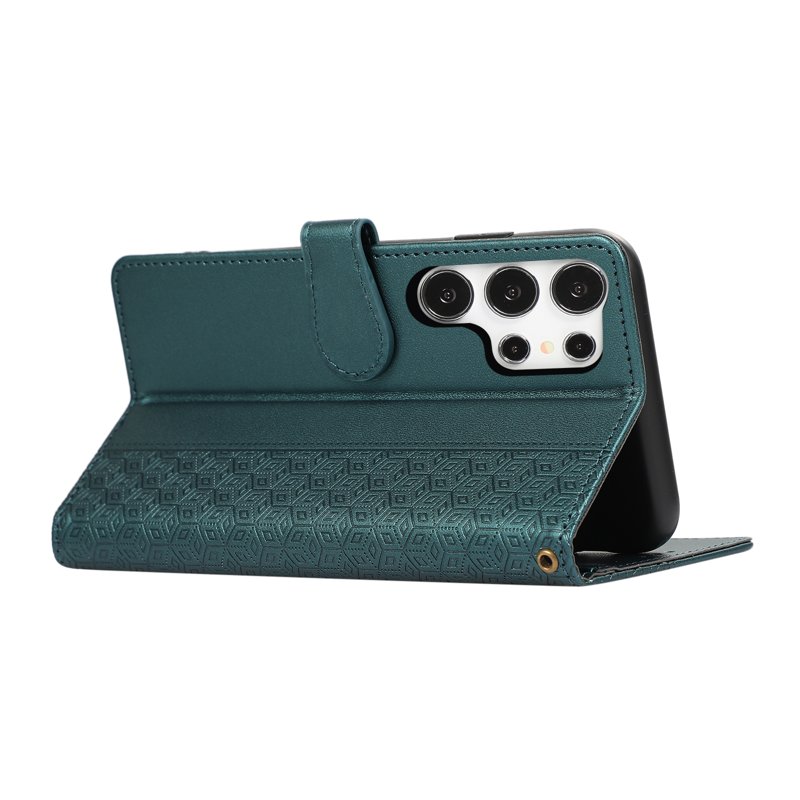 Skydda din Samsung Galaxy S26 Ultra med detta eleganta och funktionella Splicing Imprinted Rhombus Leather Phone Cover. Denna gröna mobilskal kombinerar stil med praktiska funktioner. Med sin högkvalitativa design och smarta funktioner är detta fodral perfekt för den moderna användaren som vill ha både skydd och stil.
